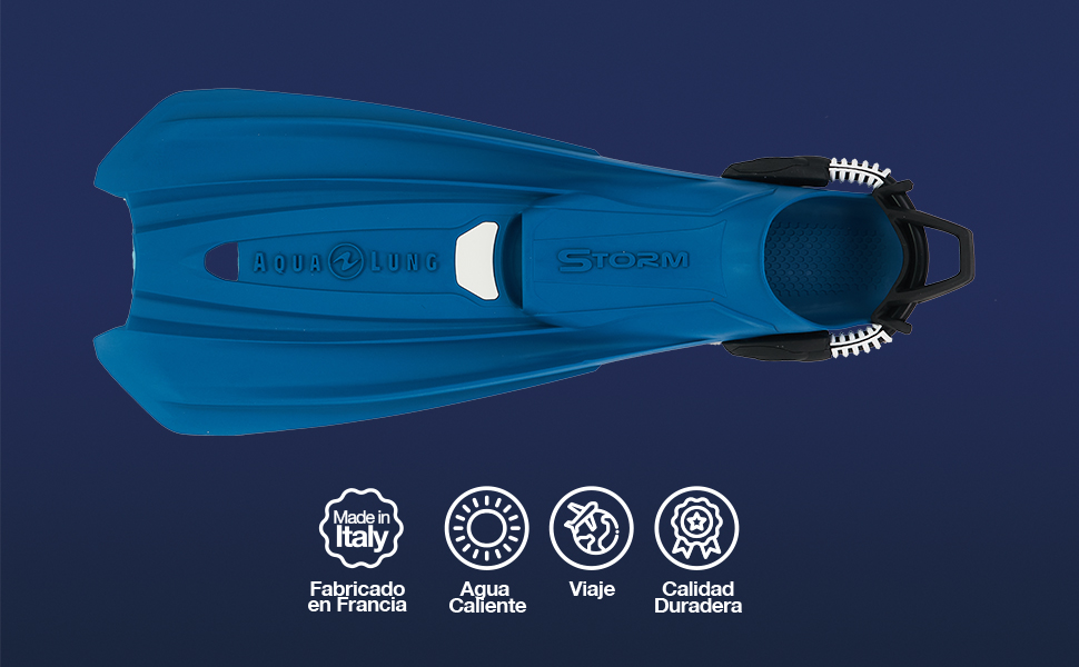 Descubre la AQUALUNG Storm, la aleta todoterreno definitiva para viajar. Fabricada en una sola pieza de Monprene® duradero y ligero, está diseñada para la aventura sin el volumen. Experimenta lo mejor de ambos mundos con una innovadora calzante que ofrece la comodidad descalza de una aleta de calzante cerrado y el tamaño versátil de un diseño de talón abierto. Una correa elástica de silicona permite ponérsela y quitársela rápidamente, mientras que la pala compacta y potente asegura una transferencia eficiente de energía en el agua. Fuerte, cómoda y fácil de empacar, la Storm es la compañera perfecta para buceadores desde jóvenes hasta adultos