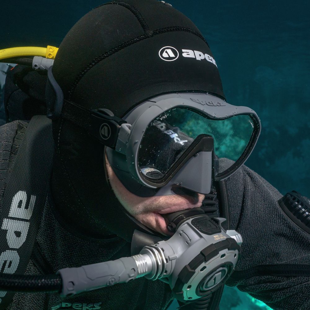 La VX1 es la primera máscara sin marco que resuelve los problemas técnicos de ajuste de los buceadores. Su avanzada falda geométrica está diseñada para minimizar los puntos de presión en el rostro durante largas inmersiones. Está disponible en blanco y negro, y hecha con silicona quirúrgica de la más alta calidad. Además se puede elegir entre distintos tipos de lentes exclusivas: Pure View o Ámbar con protección UV.