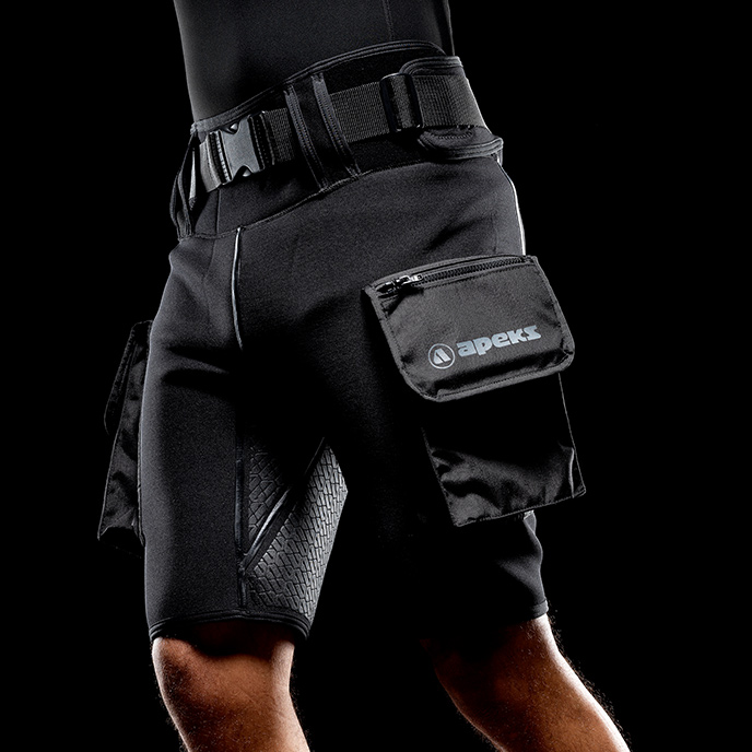 - Su bolsillo grande —tipo traje seco— te permite guardar objetos como wetnotes, máscara de reserva y spools.